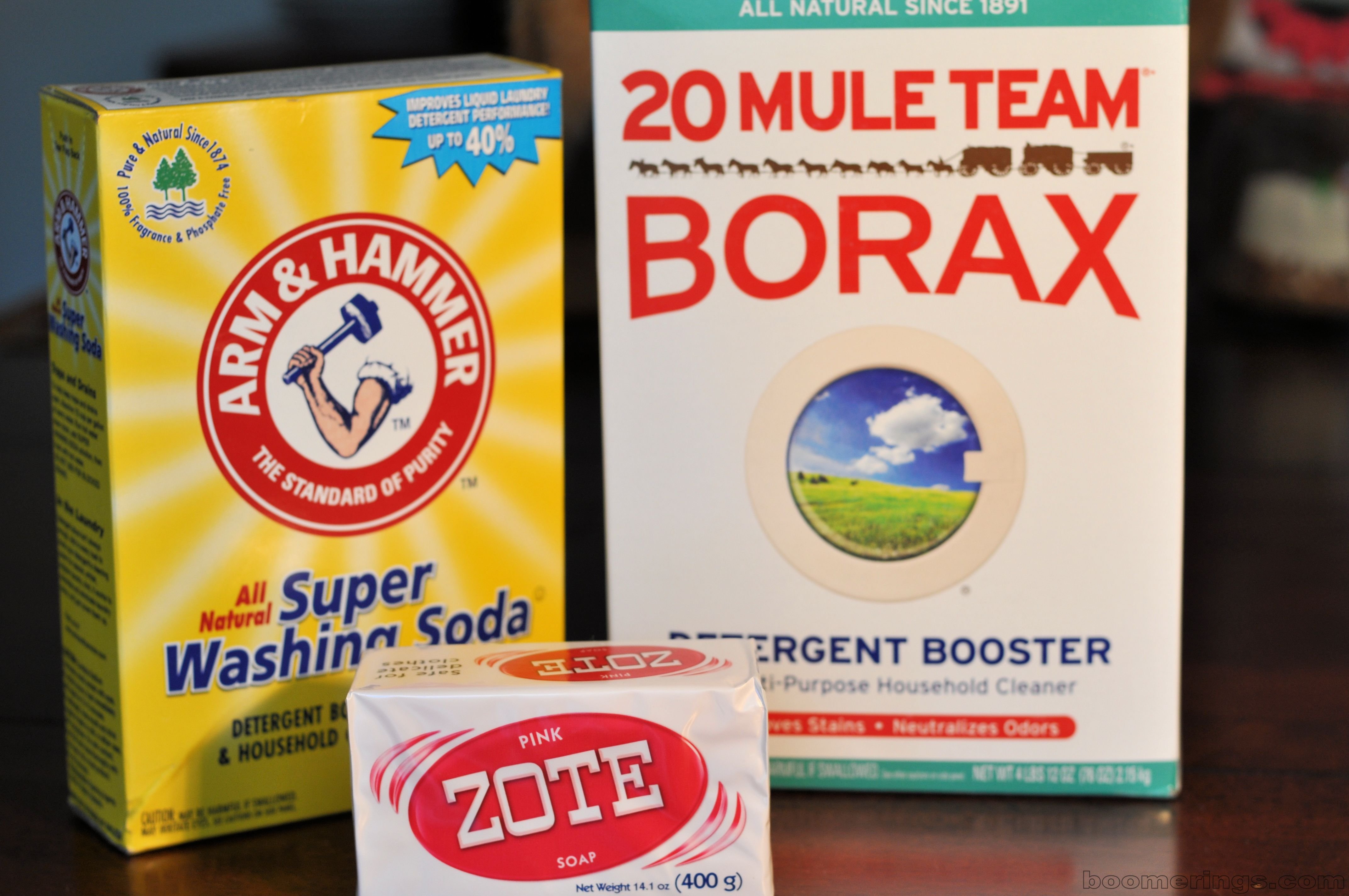 1 handful of powdered dishwasher detergent (which depending on the size of your hand could probably vary quite a bit! I used a “handful” which looked to me to be about 1/4 cup. Give or take.)