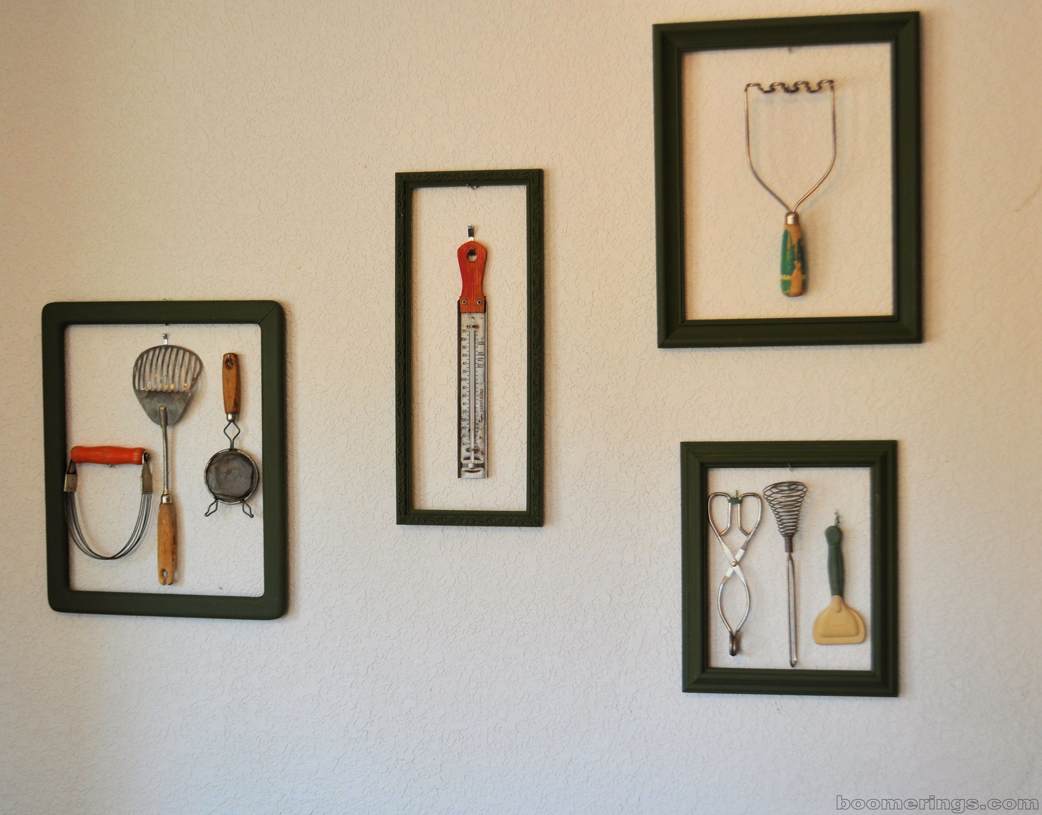 Now, those tools grace the wall in my kitchen. They no longer have to hide in a box and I don’t have to wonder if I should keep them at all.  I still don’t know if it’s art.